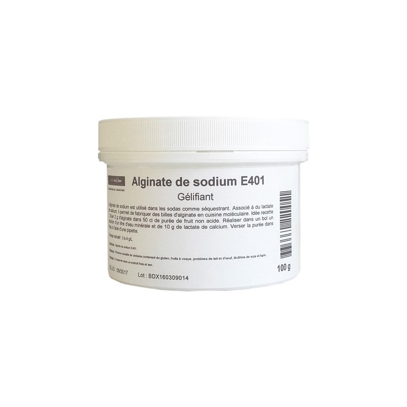 L’alginate, produit phare de la cuisine moléculaire, est un gélifiant naturel végétal qui permet de réaliser les fameuses perles liquides en présence d'ions calcium (utilisation d'un bain de chlorure de calcium ou de lactate de calcium).
