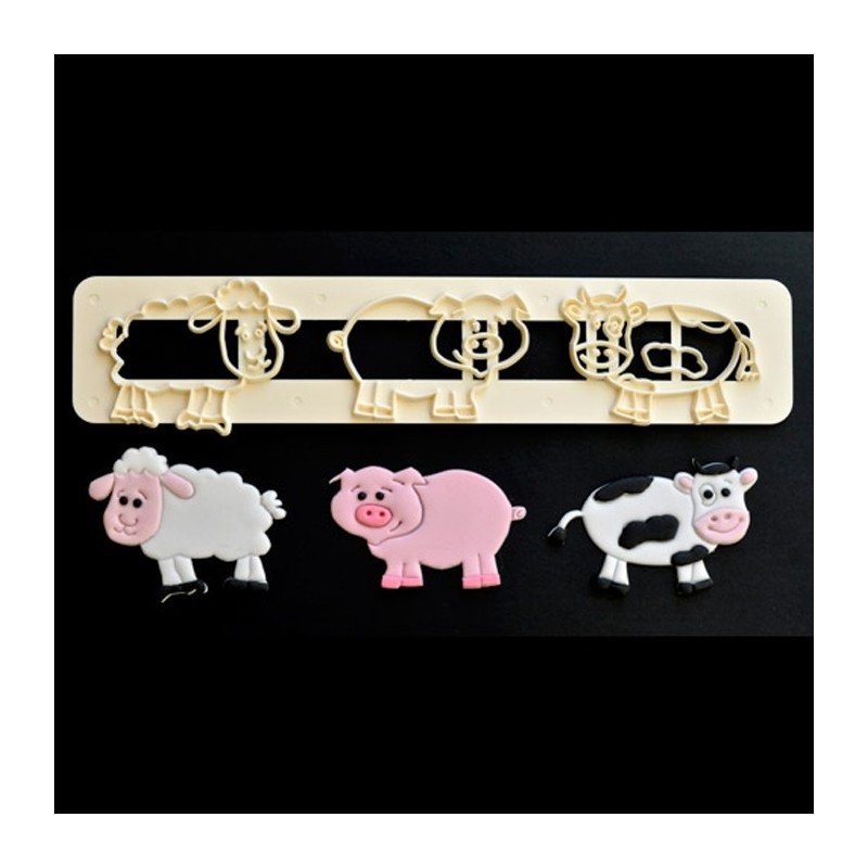 Découpoir sur le thème des animaux de la ferme : mouton, un cochon et vache.