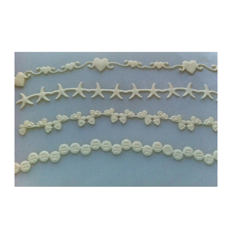 Le jeu comprend 4 emporte-pièces pour bords décoratifs différents : petits cœurs, étoiles de mer, papillons et petits nœuds.