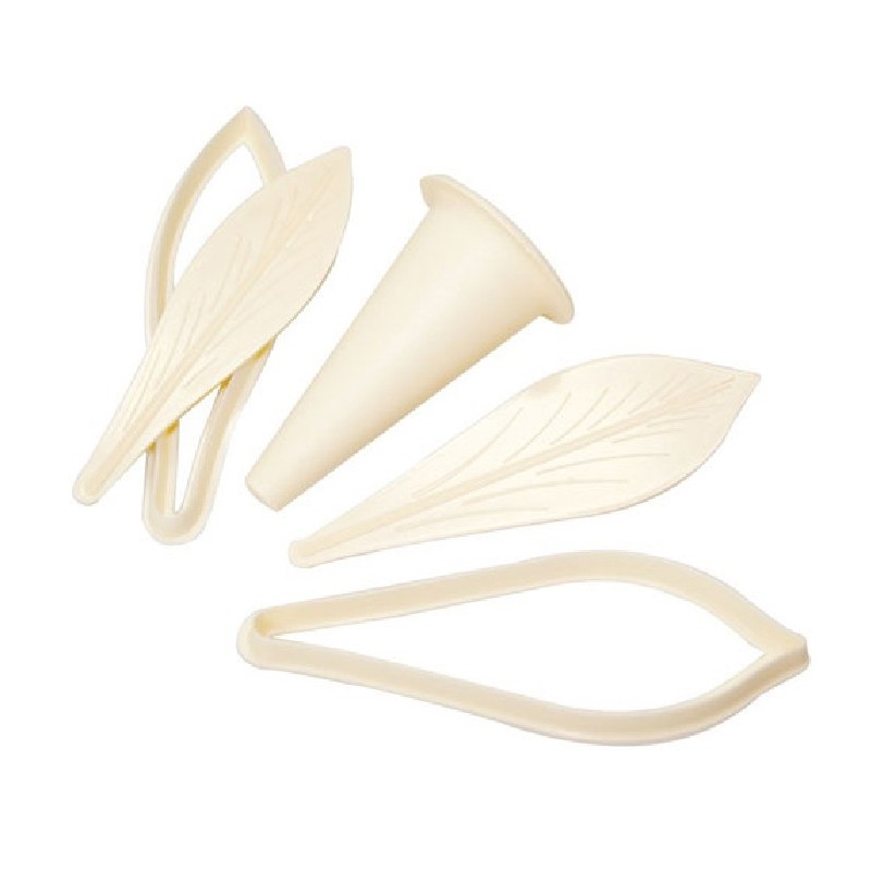 Jeu d'emporte-pièces pour le modelage de magnifiques feuilles de lys, comprenant un embosseur pour créer des nervures plus vraies que nature.