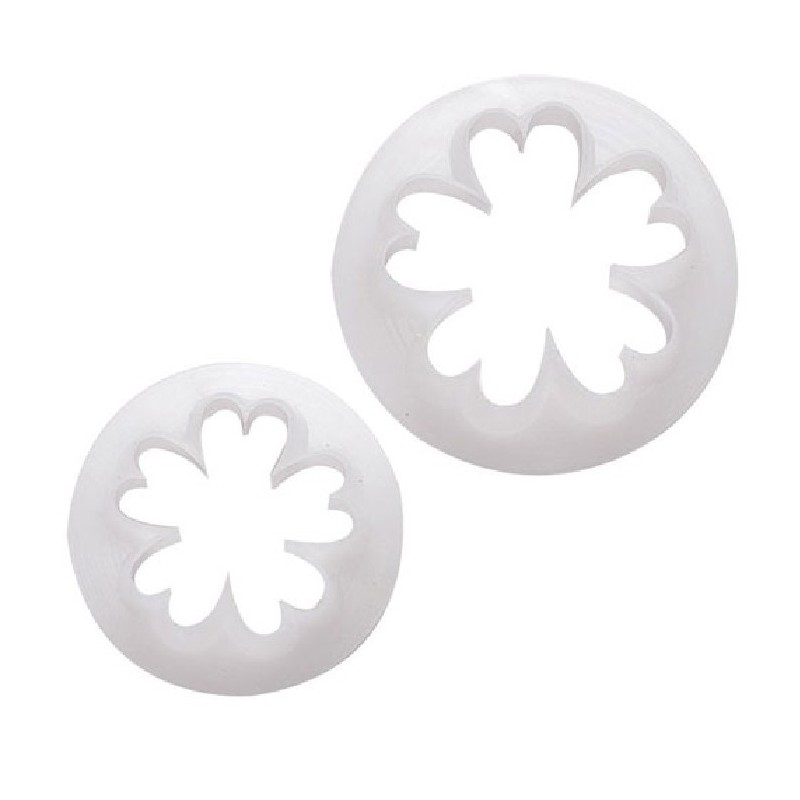 Jeu de 2 emporte-pièces en forme de primevère d'environ 21 et 28 mm. Vous pouvez utiliser les fleurs séparément ou les superposer. Pour obtenir un résultat plus réaliste, il vous suffit de creuser des nervures dans les pétales.