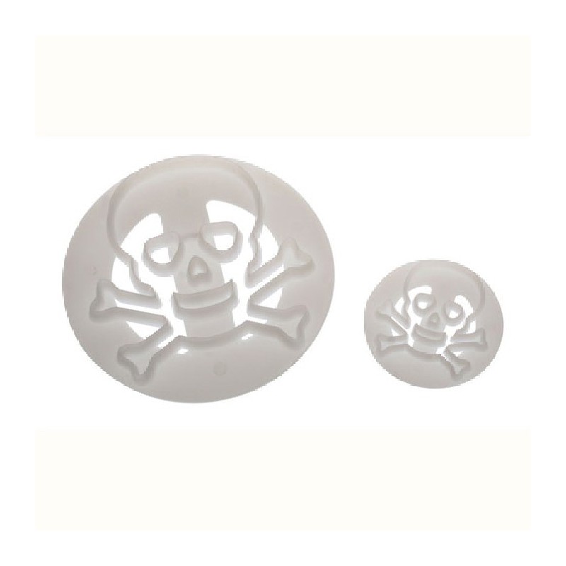 Ce jeu d'emporte-pièces représentant une tête de mort et deux os croisés est idéal pour confectionner des décorations pour cupcakes, cake pops, gâteaux et autres friandises thématiques.