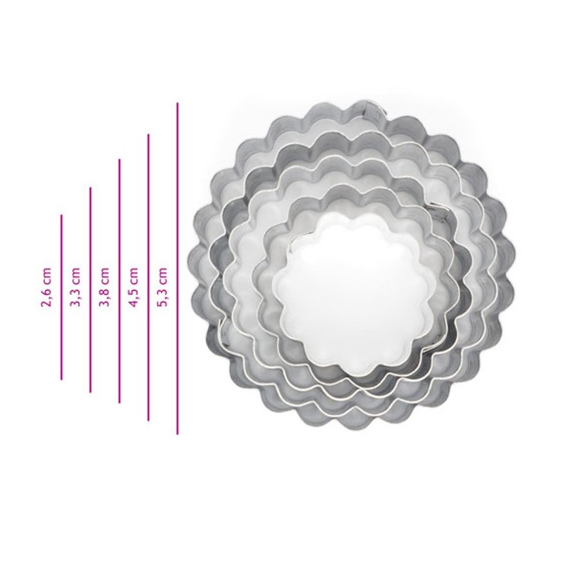 Cette série de 5 emporte-pièces en métal contient des différents anneaux cannelés.