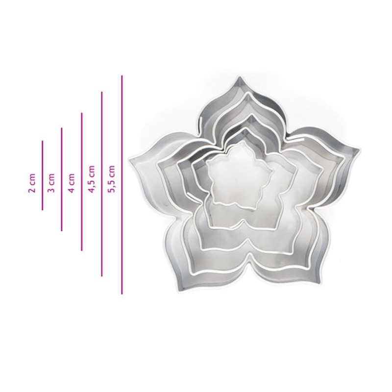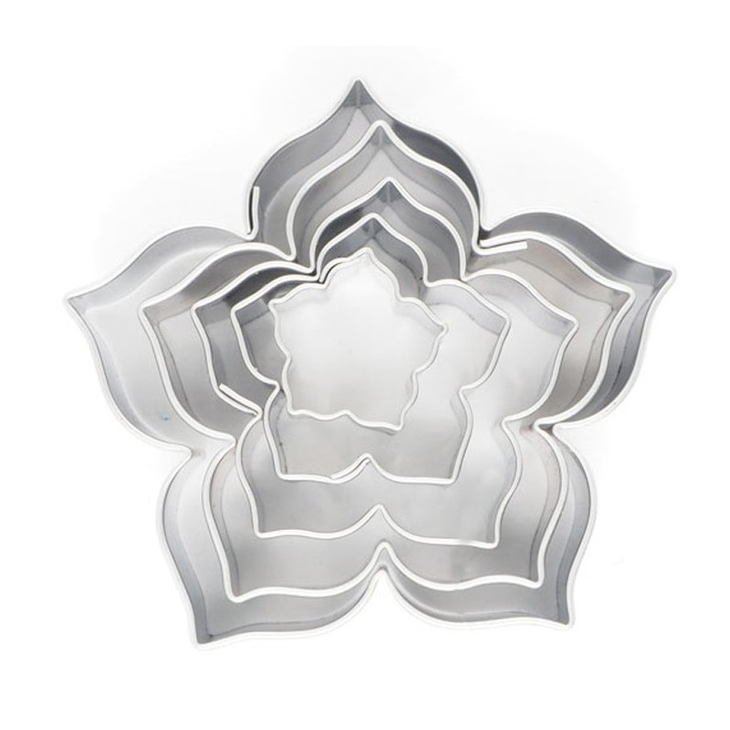 Série de cinq emporte-pièces en acier inoxydable en forme de lys.
