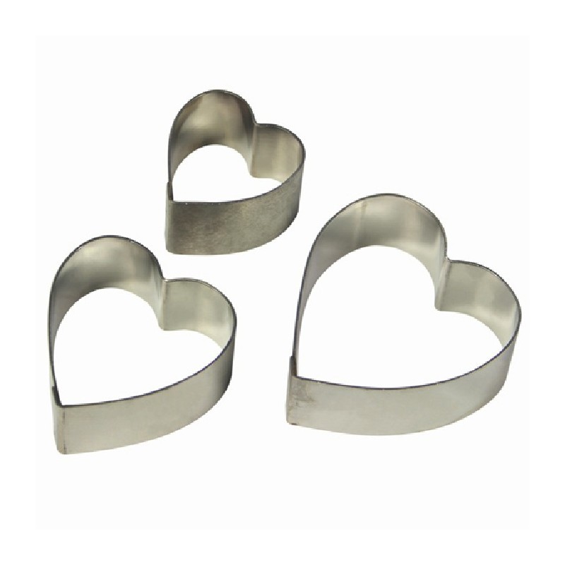 Jeu de 3 emporte-pièces métalliques en forme de cœur.