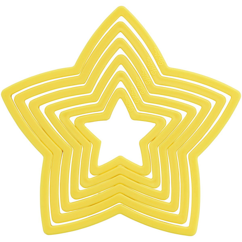 Set d’emporte-pièces en matière synthétique, formes étoiles, dimensions de 4 à 12 cm. Conception sécurisée pour une utilisation par les enfants. Idéal pour biscuits, figurines en pain, pâte à sucre ou autres préparations créatives.