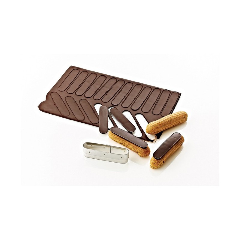 Pour la découpe de plaque de chocolat, pâte d'amande ou craquelin pour décorer les éclairs.