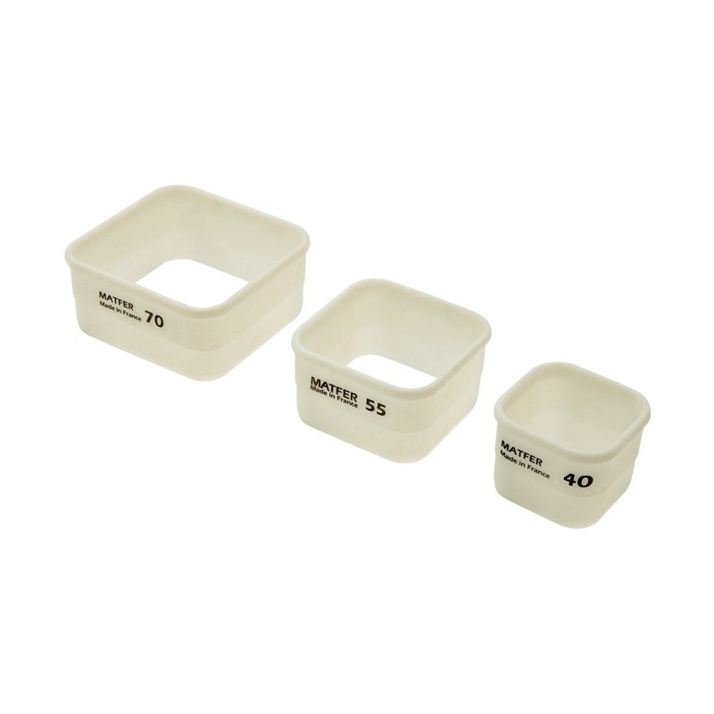 Découpoirs unis, angles rayonnés, conçus pour la réalisation de sablés et adaptés à la confection de fonds pour de nombreuses empreintes Flexipan.