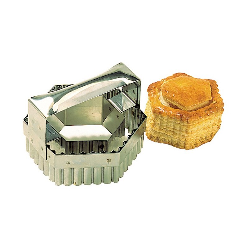 Découpe extérieure cannelée, intérieure lisse. Permet la découpe, en une seule opération de croustades à garnir.