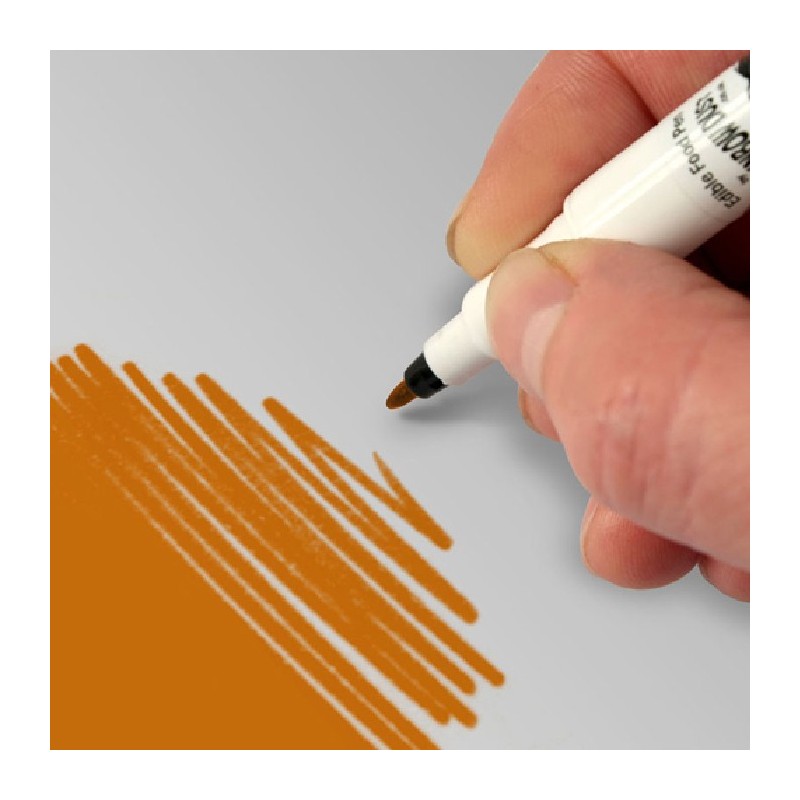 L'encre alimentaire spéciale sèche rapidement et est plus adaptée au travail de précision que la peinture appliquée au pinceau. L'efficacité du stylo est optimale sur des surfaces fermes. Il est donc conseillé de laisser sécher légèrement la pâte d'amande, la pâte à sucre ou le pastillage avant d'y appliquer l'encre. Le résultat n'en sera que meilleur. Refermez correctement le stylo avant de le ranger pour éviter que les feutres ne dessèchent. En cas de dessèchement d'un feutre, vous pouvez l'humidifier avec un peu d'eau.