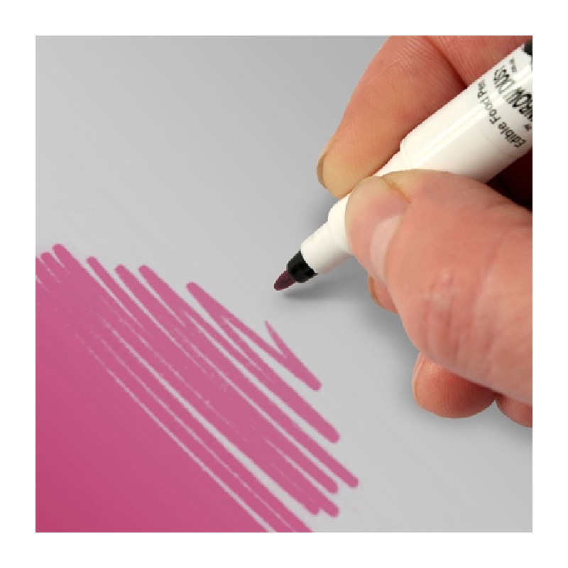 L'encre alimentaire spéciale sèche rapidement et est plus adaptée au travail de précision que la peinture appliquée au pinceau. L'efficacité du stylo est optimale sur des surfaces fermes. Il est donc conseillé de laisser sécher légèrement la pâte d'amande, la pâte à sucre ou le pastillage avant d'y appliquer l'encre. Le résultat n'en sera que meilleur. Refermez correctement le stylo avant de le ranger pour éviter que les feutres ne dessèchent. En cas de dessèchement d'un feutre, vous pouvez l'humidifier avec un peu d'eau.