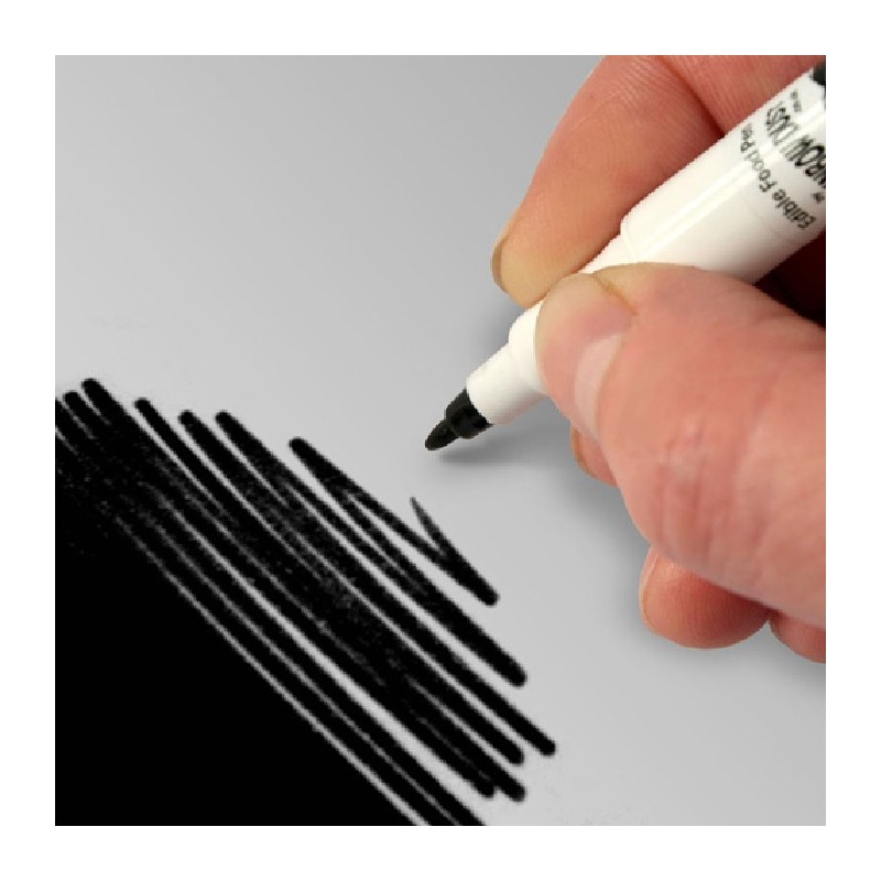 L'encre alimentaire spéciale sèche rapidement et est plus adaptée au travail de précision que la peinture appliquée au pinceau. L'efficacité du stylo est optimale sur des surfaces fermes. Il est donc conseillé de laisser sécher légèrement la pâte d'amande, la pâte à sucre ou le pastillage avant d'y appliquer l'encre. Le résultat n'en sera que meilleur. Refermez correctement le stylo avant de le ranger pour éviter que les feutres ne dessèchent. En cas de dessèchement d'un feutre, vous pouvez l'humidifier avec un peu d'eau.