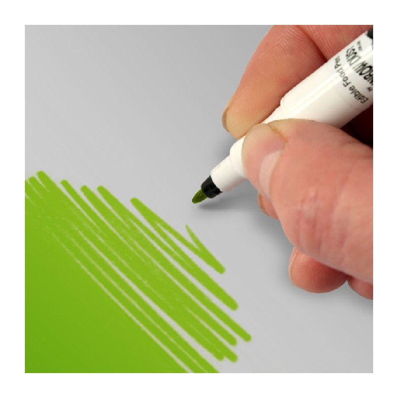 L'encre alimentaire spéciale sèche rapidement et est plus adaptée au travail de précision que la peinture appliquée au pinceau. L'efficacité du stylo est optimale sur des surfaces fermes. Il est donc conseillé de laisser sécher légèrement la pâte d'amande, la pâte à sucre ou le pastillage avant d'y appliquer l'encre. Le résultat n'en sera que meilleur. Refermez correctement le stylo avant de le ranger pour éviter que les feutres ne dessèchent. En cas de dessèchement d'un feutre, vous pouvez l'humidifier avec un peu d'eau.