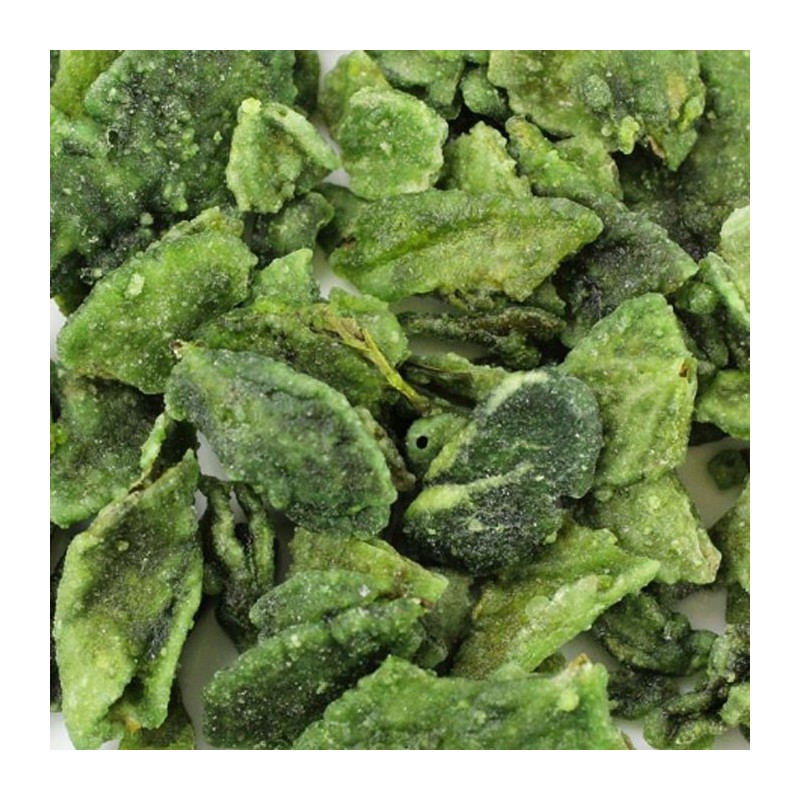 Ingrédients : sucre, feuilles de menthe naturelles, gomme d'acacia, colorant : E141.