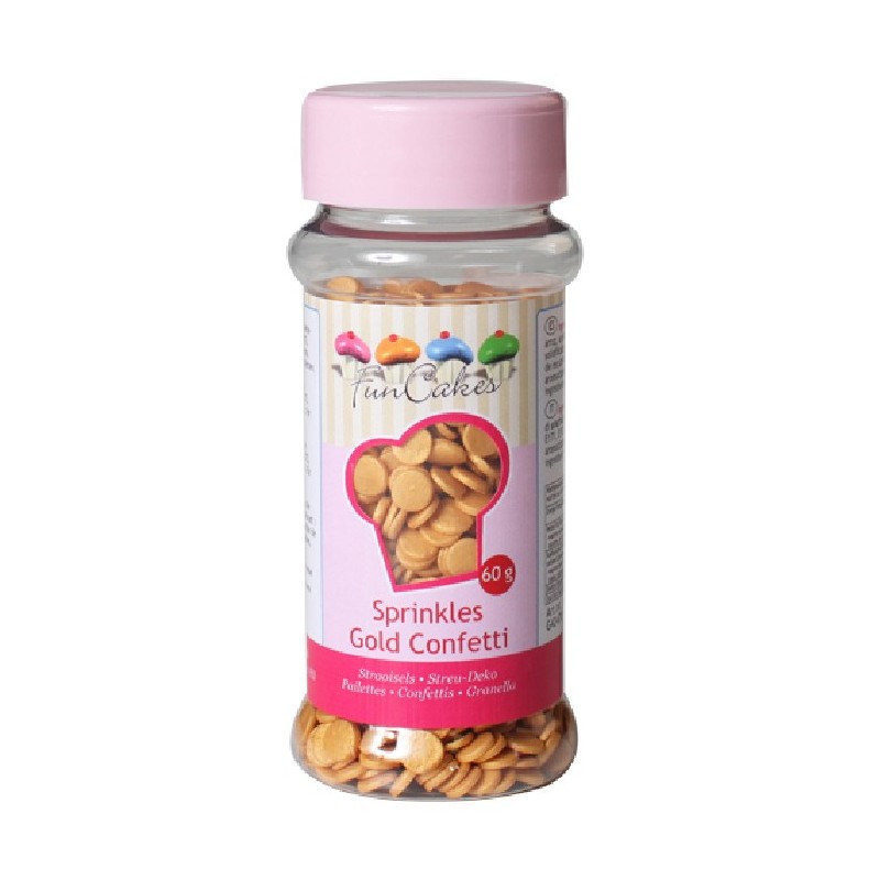 Donnez une sensation de luxe à vos cupcakes ou gâteaux avec ce confetti d'or de FunCakes ! C'est parfait pour les jours de fête.