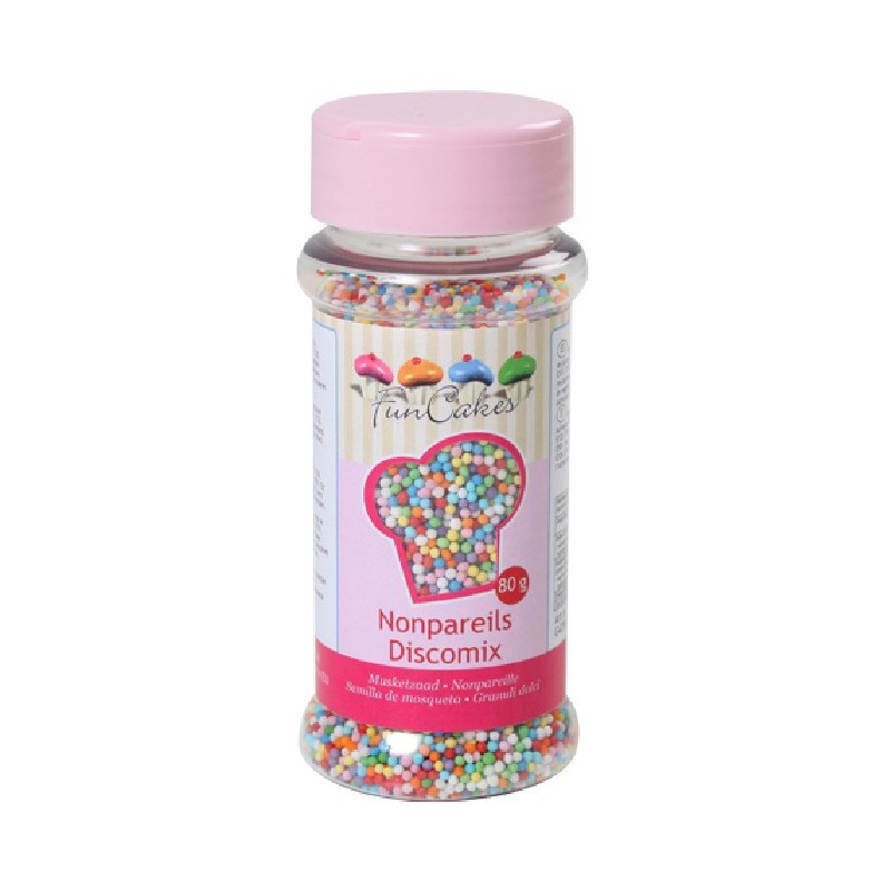 Décorez vos cupcakes, biscuits, et gâteaux avec ce joli mélange disco de FunCakes ! Mais aussi très joli pour la décoration des glaces. Le mélange disco consiste aux plusieurs couleurs de nonpareilles, emballés dans un flacon doseur pratique.