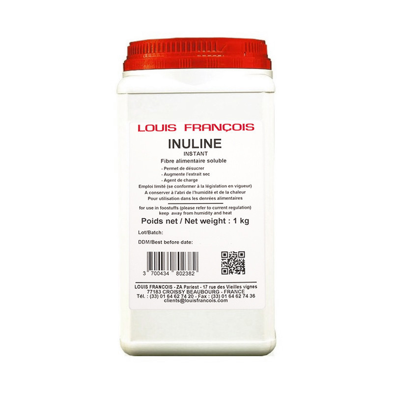 Inuline de chicorée 100 % naturelle, en format 1 kg professionnel — idéale pour enrichir vos recettes en fibres, allègement calorique, onctuosité et tenue des préparations.