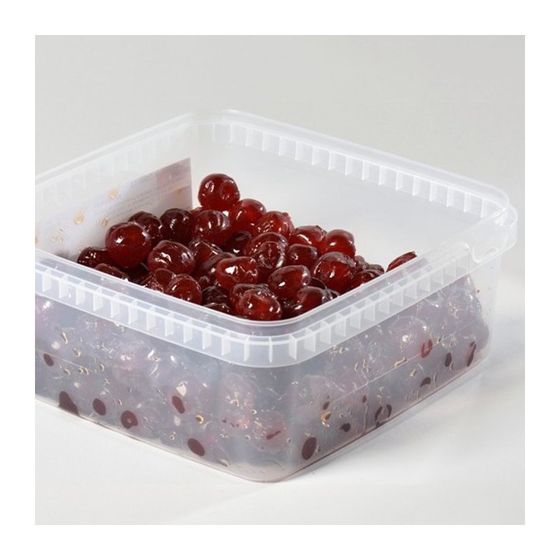 Cette boîte contient environ 40 à 50 cerises rouges confites égouttées.