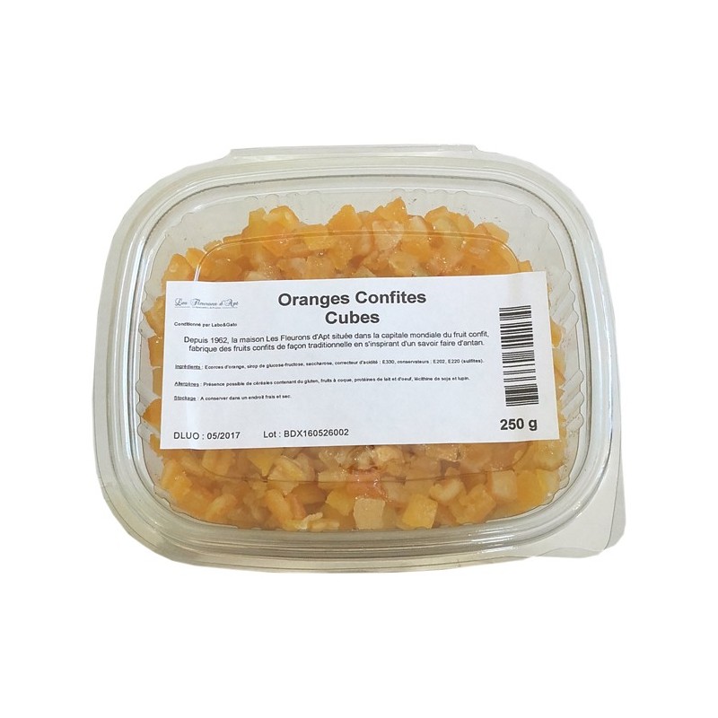 Les cubes d'écorces d'orange confite Les Fleurons d'Apt sont indispensables pour les recettes provençales traditionnelles comme les cakes aux fruits confits, les calissons d'Aix en Provence et autres panettone. Ils apportent une saveur fruitée intense à tous plats, sucré et salés.