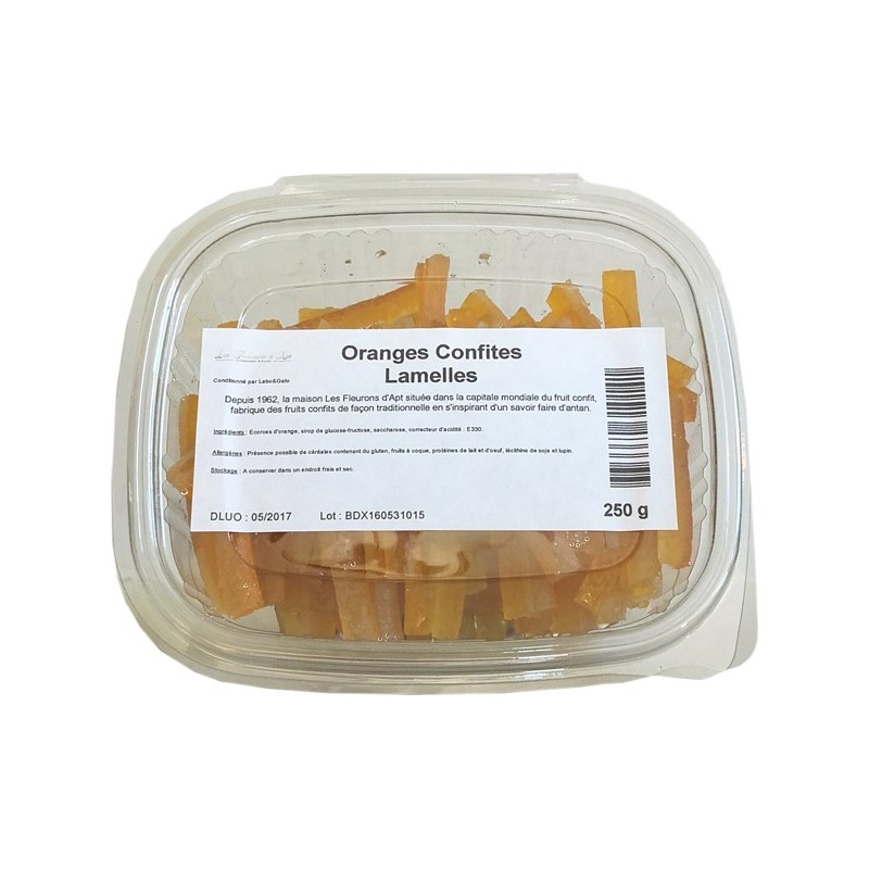 Les Fleurons d'Apt vous proposent ses lamelles d'écorces d'orange confites en Provence à la saveur acidulée intense. Il ne vous reste qu'à les enrober de chocolat noir pour obtenir de déliceuses orangettes à la fois croquantes et fondantes.