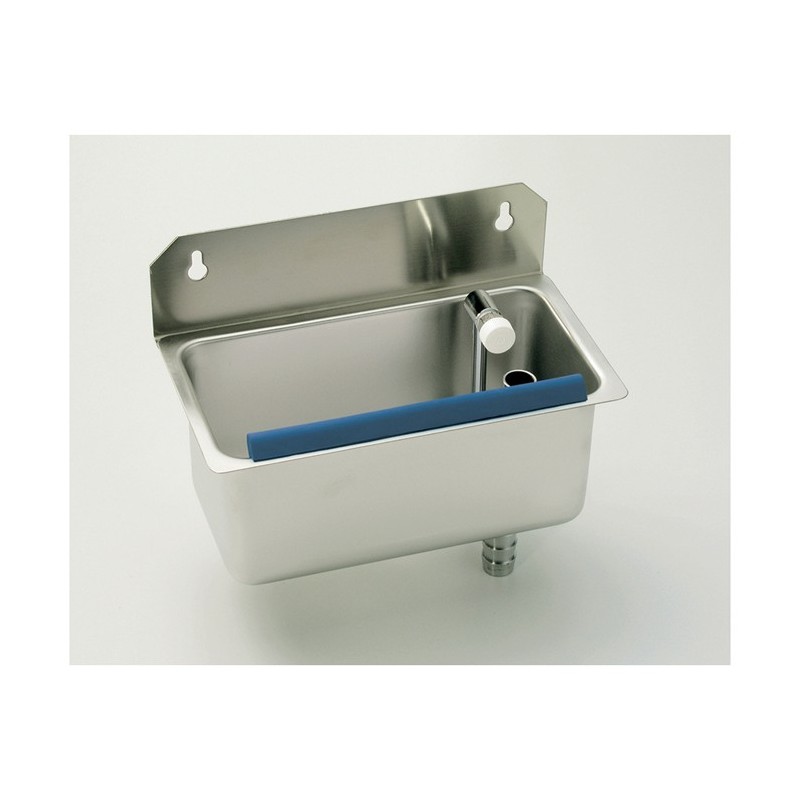 Bac de nettoyage en acier inoxydable, avec ajusteur de débit d'eau.
