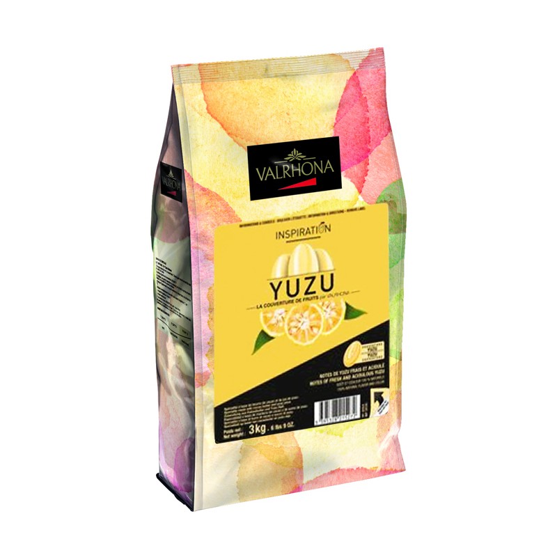 Trésor de subtilité dans la grande famille des agrumes, le yuzu fait partie des classiques de la gastronomie asiatique. Même si ce petit fruit jaune d’or s’est fait une place de choix à la carte des plus grandes tables et dans la vitrine des plus belles pâtisseries, il garde un délicieux parfum d’exotisme. La couverture de fruits Inspiration Yuzu de Valrhona en exalte le goût acidulé et frais dans toute son intensité etpermet de relever les autres saveurs associées, avec une affinité toute particulière avec le chocolat noir, la noix de coco et les herbes aromatiques.