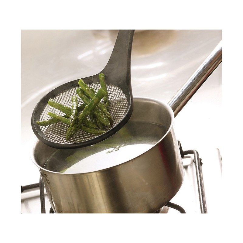 Fusion d’une araignée et d’une écumoire, le SKIM’ALL permet de récupérer et d’égoutter délicatement même les plus petits produits, pochés ou frits.