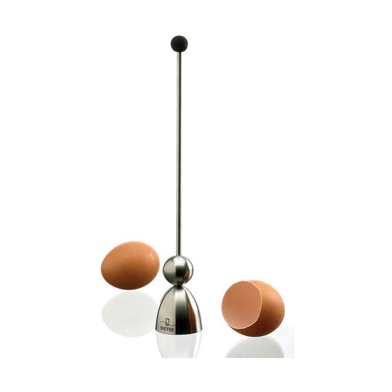 Un appareil simple à utiliser : grâce à l'onde de choc produite par la boule qu'on laisse tomber du haut de la tige, la coquille de l'oeuf est découpée de façon parfaitement nette.