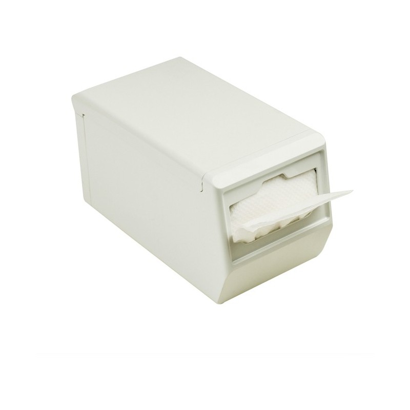 Ce distributeur à poussoir intégré s'adapte aux serviettes 33 x 33 cm et 33 x 40 cm avec feuille décalée.