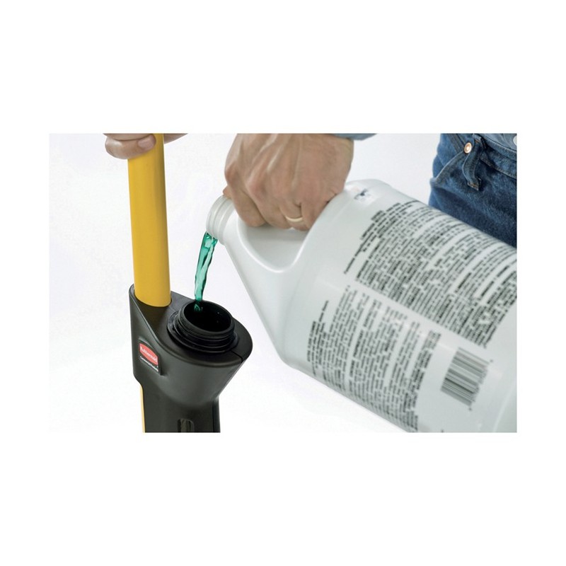 Manche avec embout non glissant et bouton pressoir libérant 3 jets de solution de nettoyage contenue dans le réservoir. réservoir intégré rechargeable contenance 0,6 L permettant de nettoyer jusqu’à 80m² de surfaces.