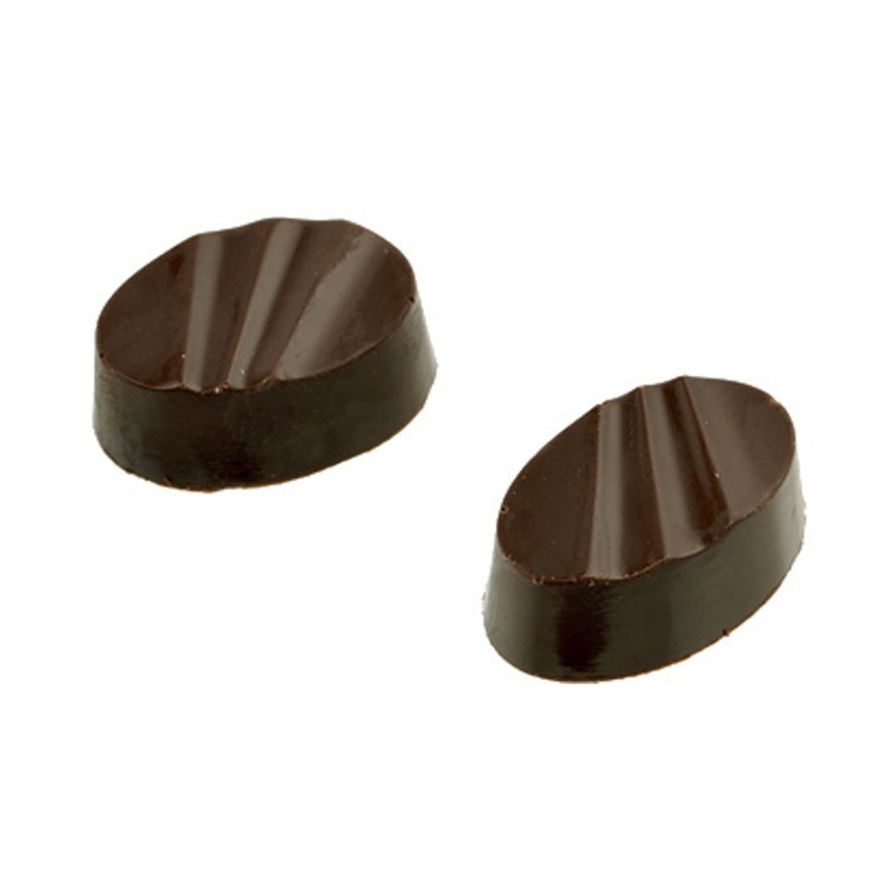 Moule 28 bonbons ovales striés en polycarbonate pour chocolat.