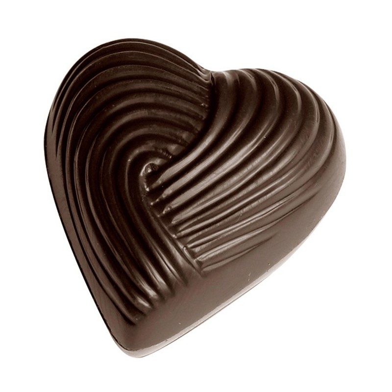 Moule bonbons coeur strié en polycarbonate pour chocolat.