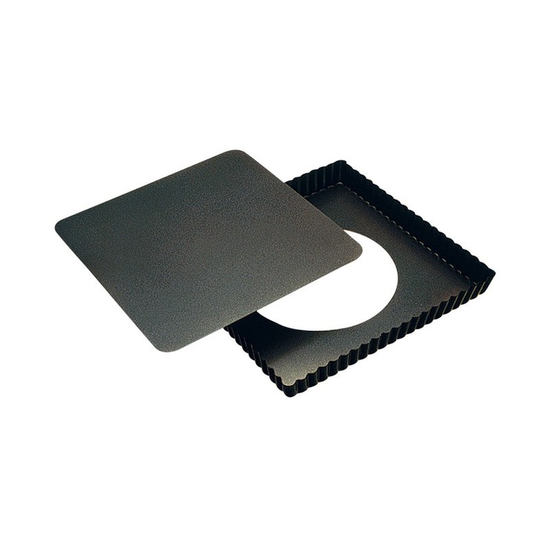 Moule tarte carrée cannelée, fond mobile, anti-adhérent.