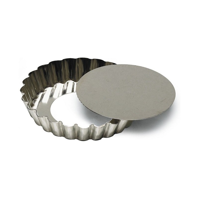 Moule tartelette ronde cannelée, fond mobile, fer blanc.