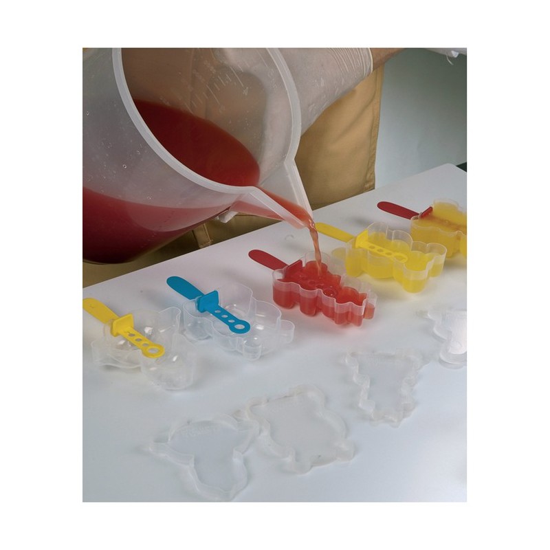 Moules en polypropylène avec couvercle pour la fabrication de sucettes à base de sorbet. Incorparation pratique et rapide des bâtonnets plastiques, avec parfait maintien.