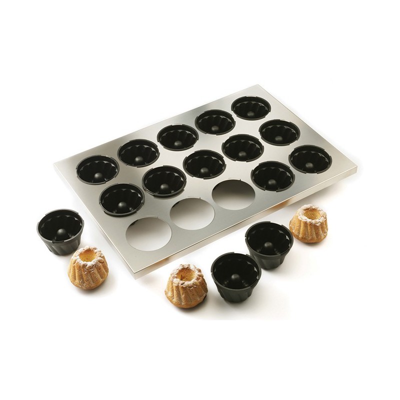 Facilite et réduit le temps de manipulation des moules lors du remplissage et de la cuisson. Moules amovibles pour le nettoyage.