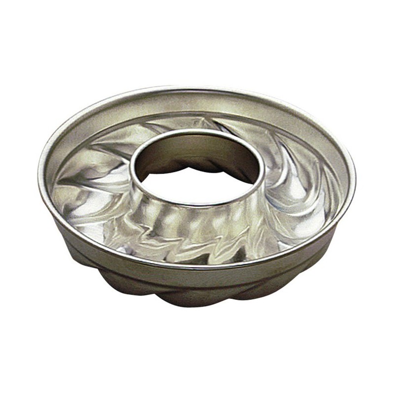 Moule savarin Trois Frères, fond torsadé, cylindre débouché, fer blanc.