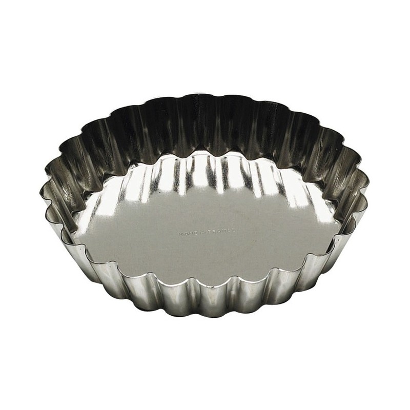 Moule tartelette ronde cannelée, fond fixe, fer blanc.