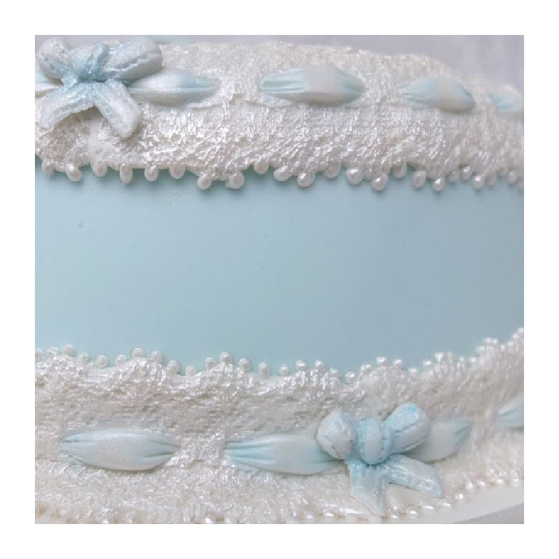 Ce moule en silicone conçu par Karen Davies vous permet de réaliser un joli bord en dentelle dont vous pouvez orner aussi bien le bord inférieur que le bord supérieur de votre gâteau.