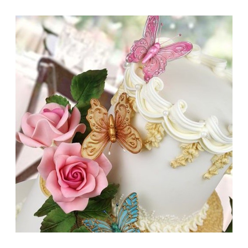 Créer de magnifiques fins papillons en fondant ou pâte de gomme avec ce moule de Katy Sue. Ces papillons sont idéals pour la décoration des gâteaux de mariage, entre autres. Ce moule a été développé en collaboration avec le créateur de gâteaux de renommée internationale Ceri Griffiths. Combinez les différents moules de la gamme Cake System et vous disposerez d'une base solide pour réaliser un gâteau recouvert de fondant et ressemblant à s'y méprendre au glaçage royal !
