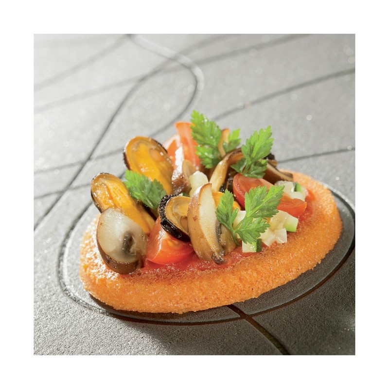 Le Flexipan est une combinaison de tissus de verre et de silicones qui lui confère une solidité et une longévité inégalées, alliées à des propriétés anti adhérentes exceptionnelles. Utilisable en congélation comme en cuisson de -40°C à +280°C. Utilisable pour la cuisson dans tous les types de four, au bain marie et en surgélation. Démoulage facile des produits congelés ou cuits. Utilisable aussi bien pour les pâtes que pour les mousses ou les crèmes, les aspics, les glaces, les entremets, que les préparations soient salées ou sucrées. La préparation en plaques entières fait gagner un temps précieux. Selon les produits, 2000 à 3000 utilisations peuvent être réalisées avant l'apparition des premiers signes de collage.