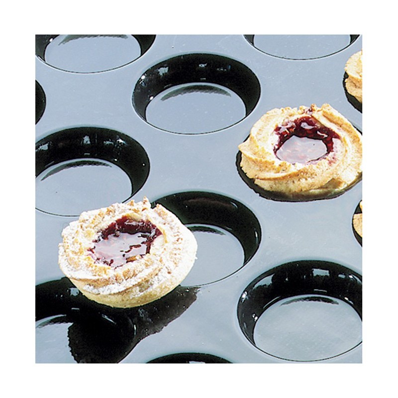 Conseils d'utilisation : Toujours utiliser le Flexipan sur une plaque aluminium perforée avant de remplir. Ne pas utiliser de couteau pour démouler mais procéder par déformation du moule. Nettoyer après chaque utilisation à l'éponge non abrasive avec un produit dégraissant au pH neutre. Laisser sécher à l'envers.