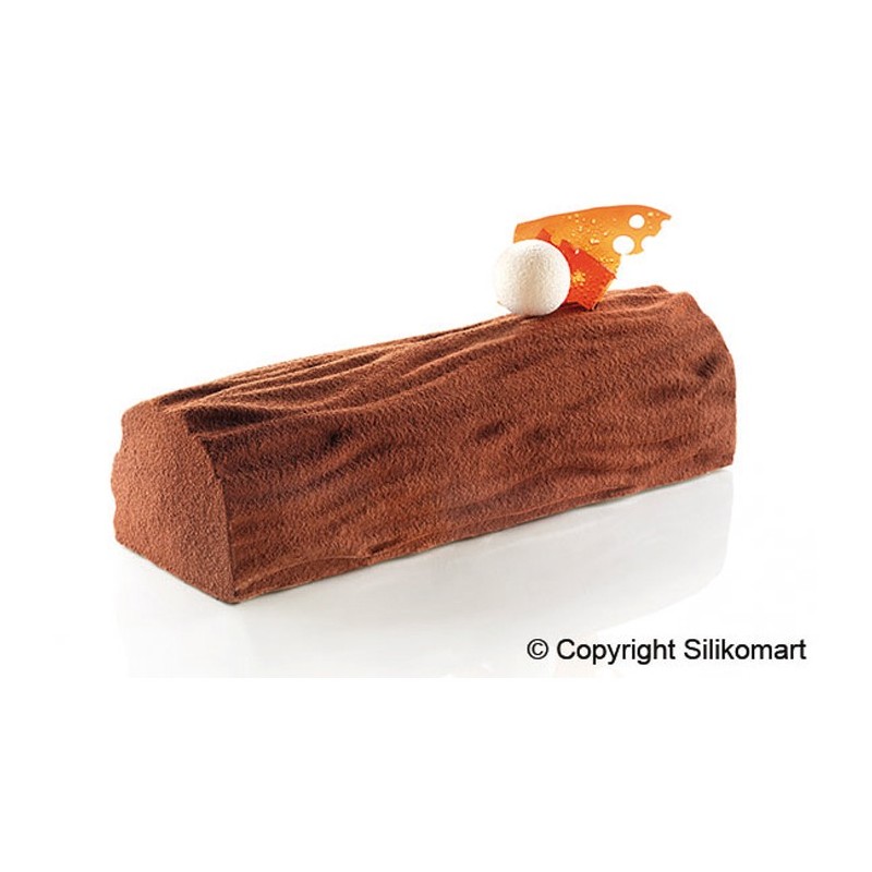 Le tapis Wood est de couleur noire et s’adapte parfaitement au moule bûche : une fois inséré le tapis dans le moule, vous pourrez préparer une véritable bûche pour des préparations, au four ou froides. Le tapis Wood présente dans la texture une flèche qui permet d’emboiter plusieurs tapis pour obtenir des trames plus longues et pour réaliser bûches plus grandes.