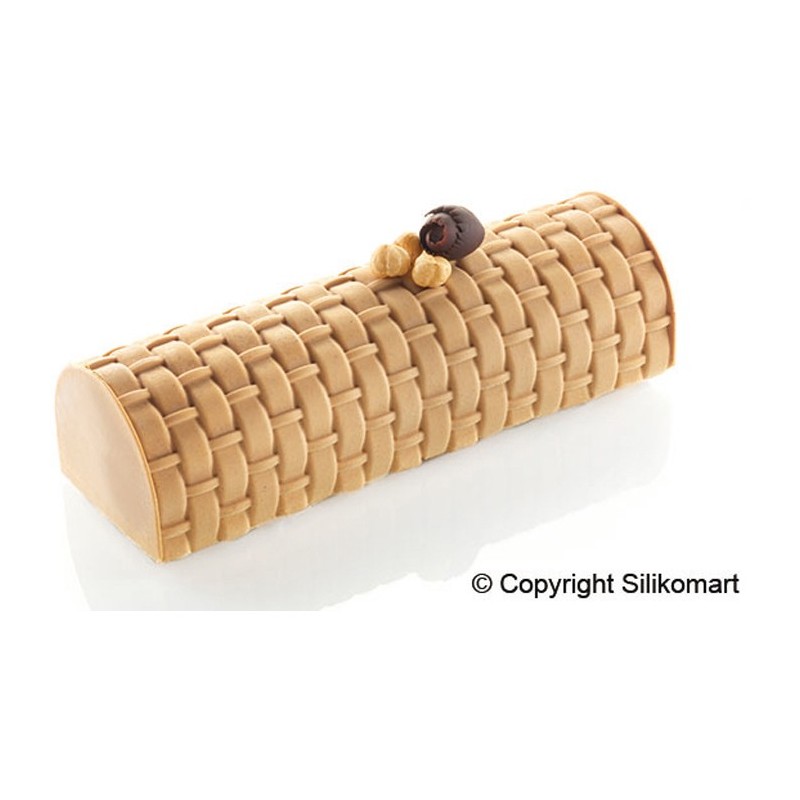 Le tapis Vienna aux dimensions est de couleur noir et s’adapte parfaitement au moule bûche : une fois inséré le tapis dans le moule, vous pourrez préparer une véritable bûche pour des préparations, au four ou froides. Le tapis Vienna présente dans la texture une flèche qui permet d’emboiter plusieurs tapis pour obtenir des trames plus longues et pour réaliser bûches plus grandes.