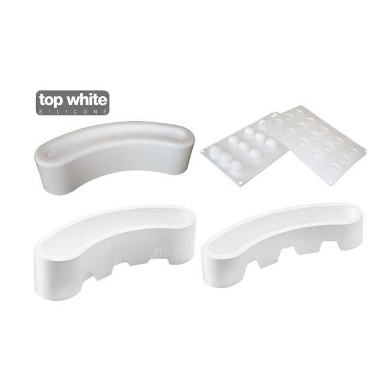 4 Moules s’unissent pour une combinaison gagnante entre forme et goût. Composé de 4 parties: trois moules en silicone alimentaire 100% Made in Italy et un support en plastique pour garantir une grande stabilité en phase de préparation. Le Kit est réalisé en collaboration avec le Team Italia composé par: le président Gino Fabbri, le capitaine Lucca Cantarin, Francesco et Marcello Boccia et l’entraîneur Alessandro Dalmasso. Team Italia, couronné à la Coupe du Monde de la Pâtisserie de Lyon 2013.