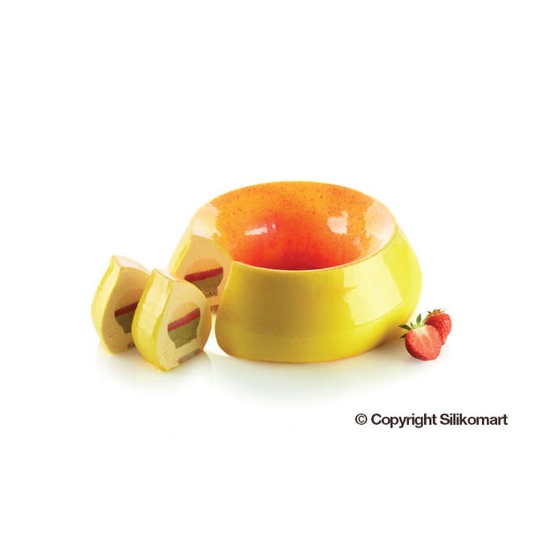 Le Kit Flame se compose de 3 éléments: un moule en silicone pour réaliser une préparation au volume de 2000 ml, un insert en silicone pour créer un dessert à l'exclusif effet coupe et un emporte-pièce pratique pour créer des inserts originaux ainsi que des bases de support en génoise ou croustillant.