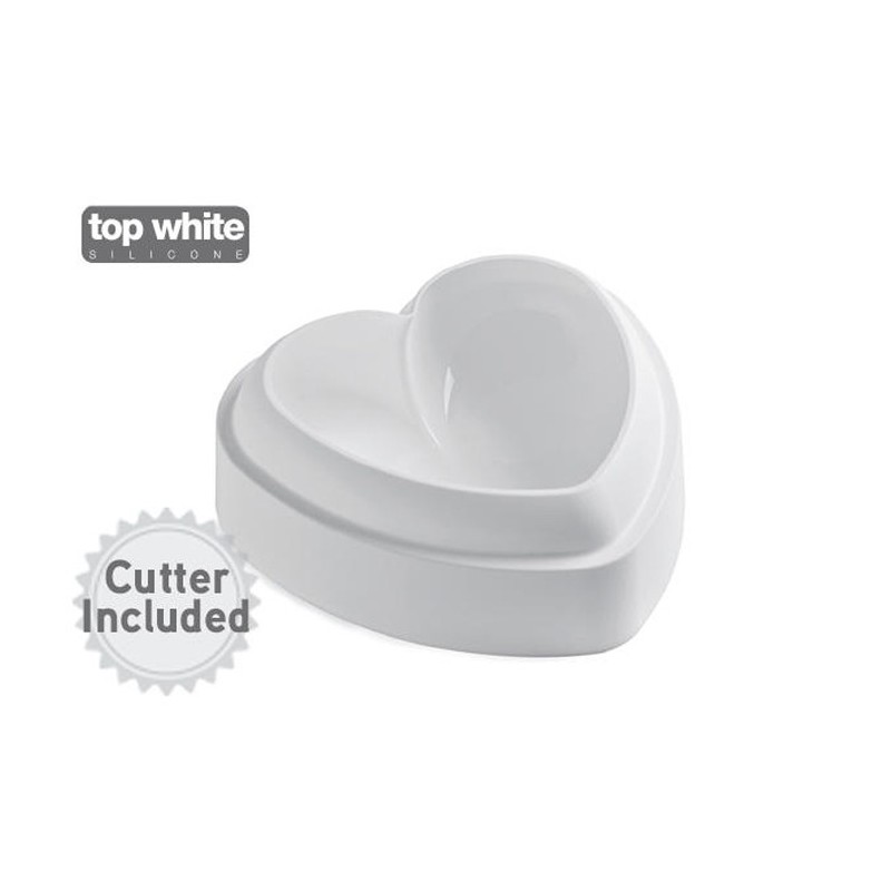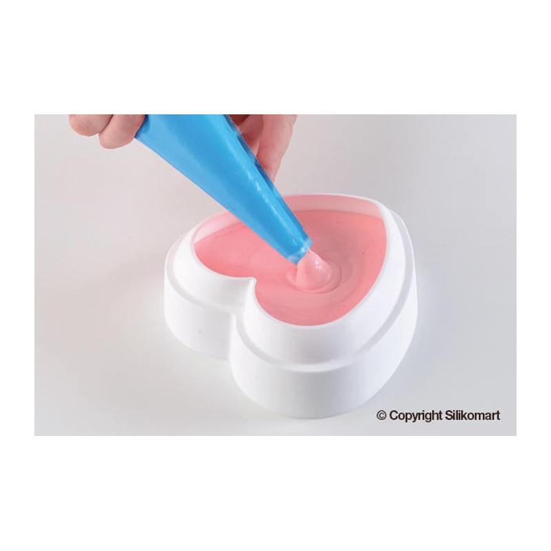 Moule en silicone pour réaliser de très beaux gâteaux en forme de coeur. Le moule est équipé d’une spéciale et innovante bordure sur le côté supérieur, qui confère aux préparations une forme particulière, arrondie à la base. Il est idéal pour des préparations douces et salées et garantit une résistance à la température entre -60°C à +230°C.