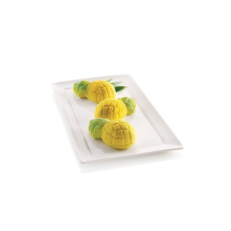 La nouvelle tendance est FRUITÉE! Une série de moules en silicone pour réaliser des créations juteuses en forme de fruits avec un original effet 3D. L'ananas, le fruit tropical par excellence, on le retrouve ici en version mini aux couleurs vives, intenses et vitaminées pour des plaisirs gourmands à croquer. Les cavités du moule Mini Ananas de la gamme 3Design de Silikomart sont équipées d'une innovante bordure intérieure qui donne une légère forme arrondie à la base de vos préparations. Mini Ananas garantit des résultats impeccables non seulement dans la version parfait et mousse, mais aussi avec des préparations cuites.