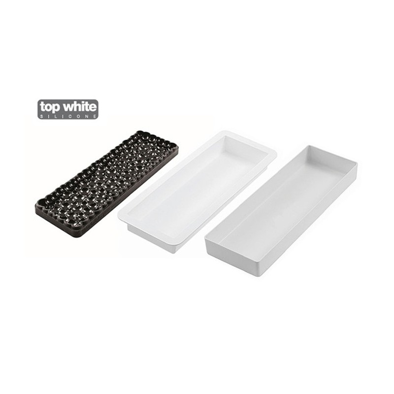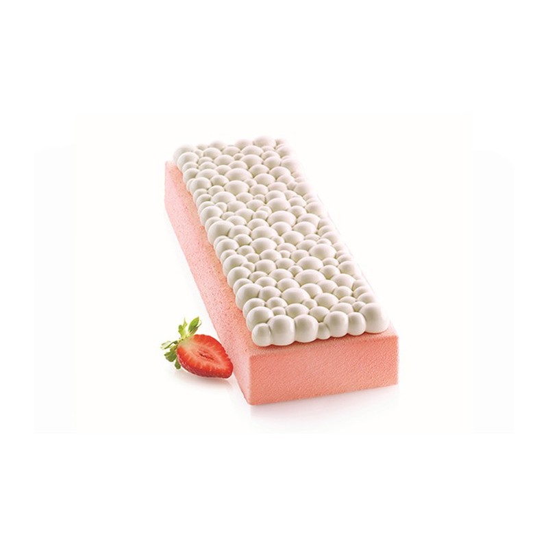 Tous les sens seront agréablement chatouillés par une texture douce au goût. Le Kit Mille Bolle1300 de Silikomart Professional est composé de trois éléments : un moule en silicone pour réaliser une préparation de 1300 ml, un support en plastique qui garantit une plus grande stabilité et facilité d'utilisation et un tapis en silicone avec une texture bulle originale. Une façon simple et innovante de créer des desserts sophistiqués et légers comme une bulle.