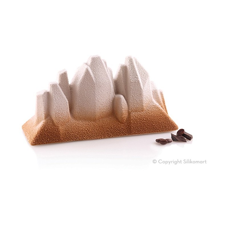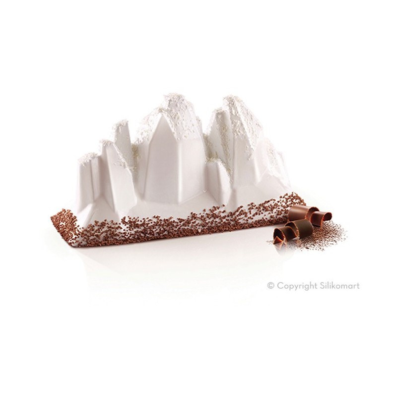 Trois pics de douceur, trois pics de saveur, une rencontre inédite parmi la grandeur du goût et la majesté du paysage dolomitique. Le moule TRE CIME de Silikomart Professional, avec un volume de 650 ml a été créé pour donner une forme au charme de la montagne qui pourra être goûté à chaque bouchée.